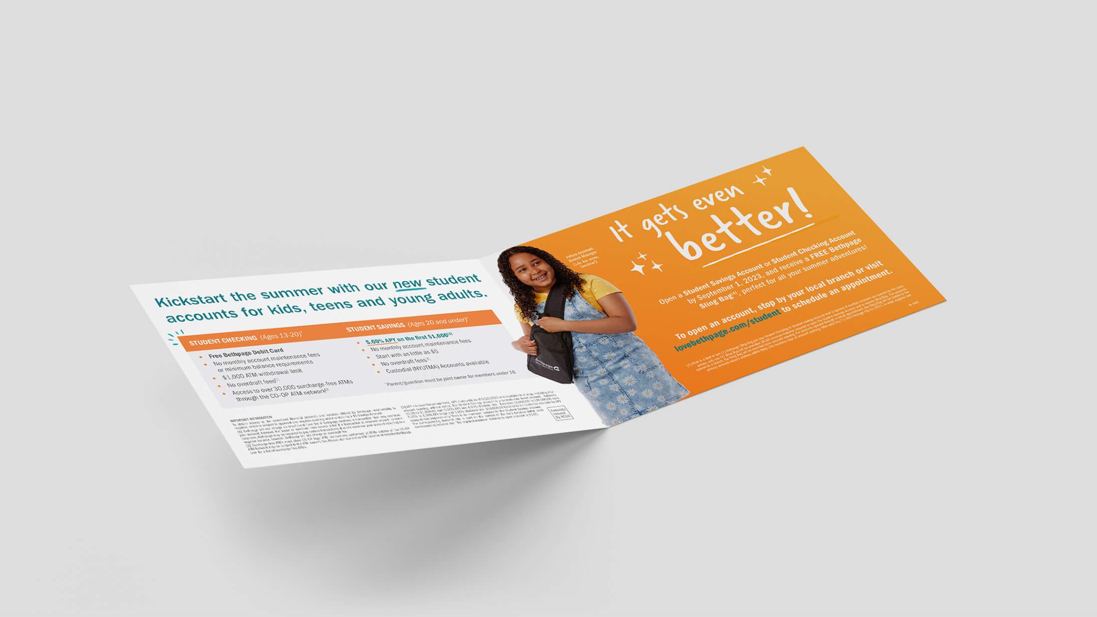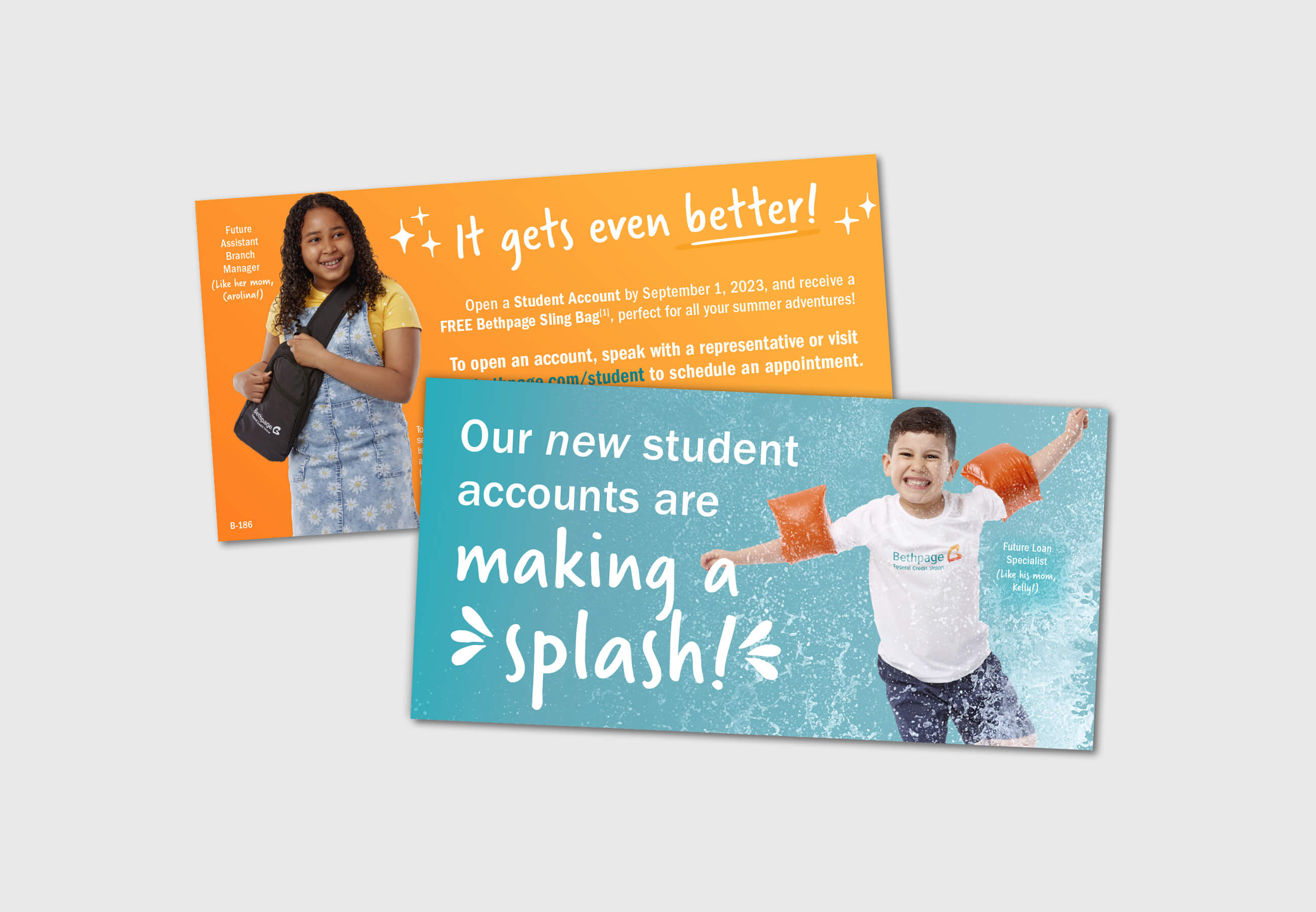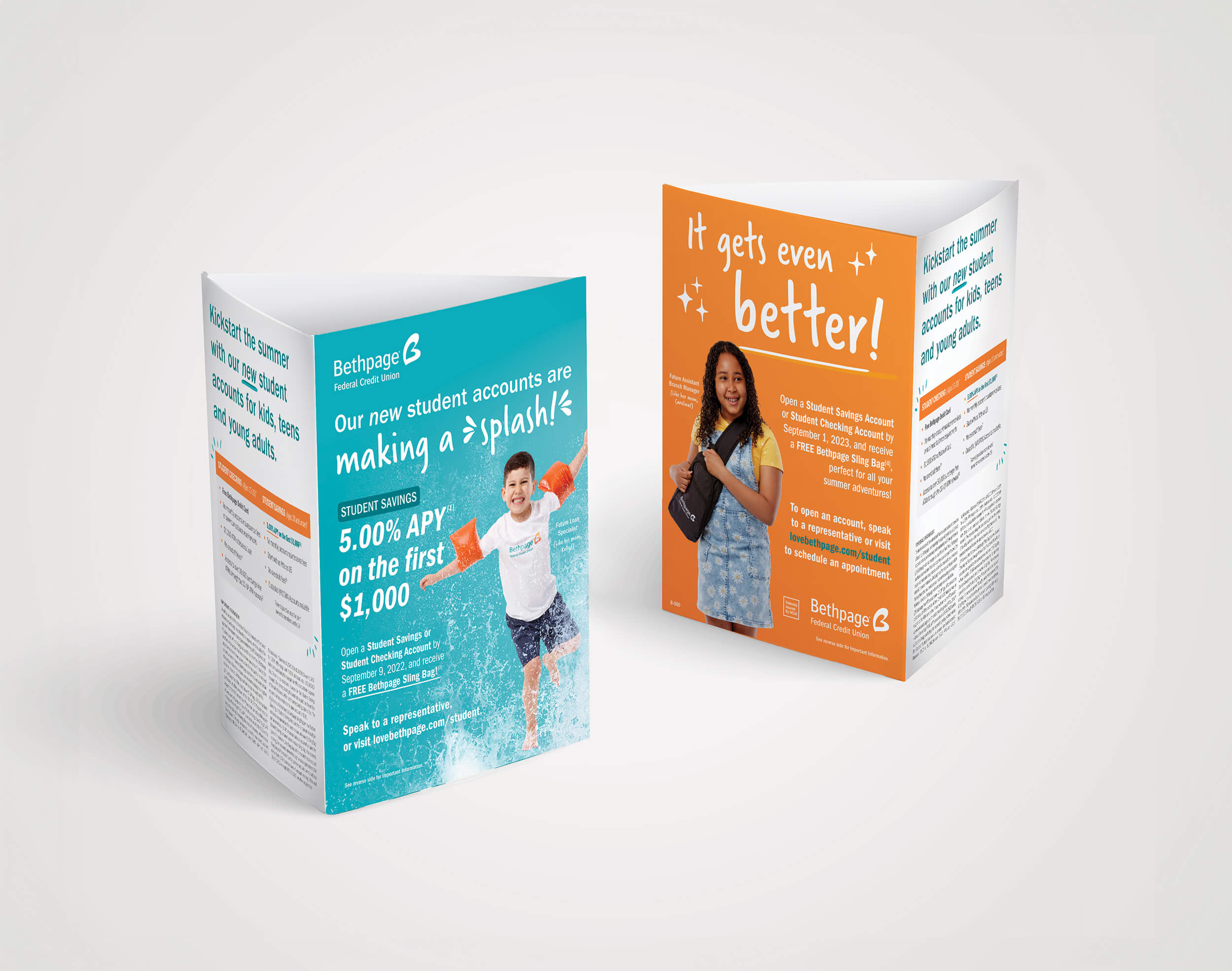 Celebrated the launch of Bethpage's new student accounts with an energetic and appealing campaign for the 2023 Summer Student Promotion. Combining the excitement of savings with the promotion's Bethpage-branded sling bag giveaway with each new student account opening, this campaign made a splash!