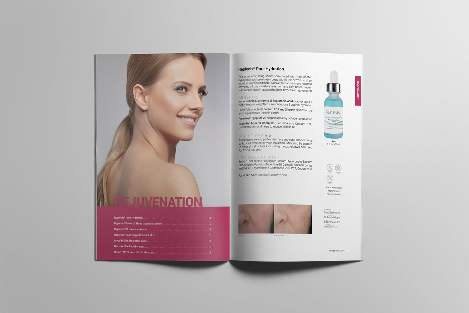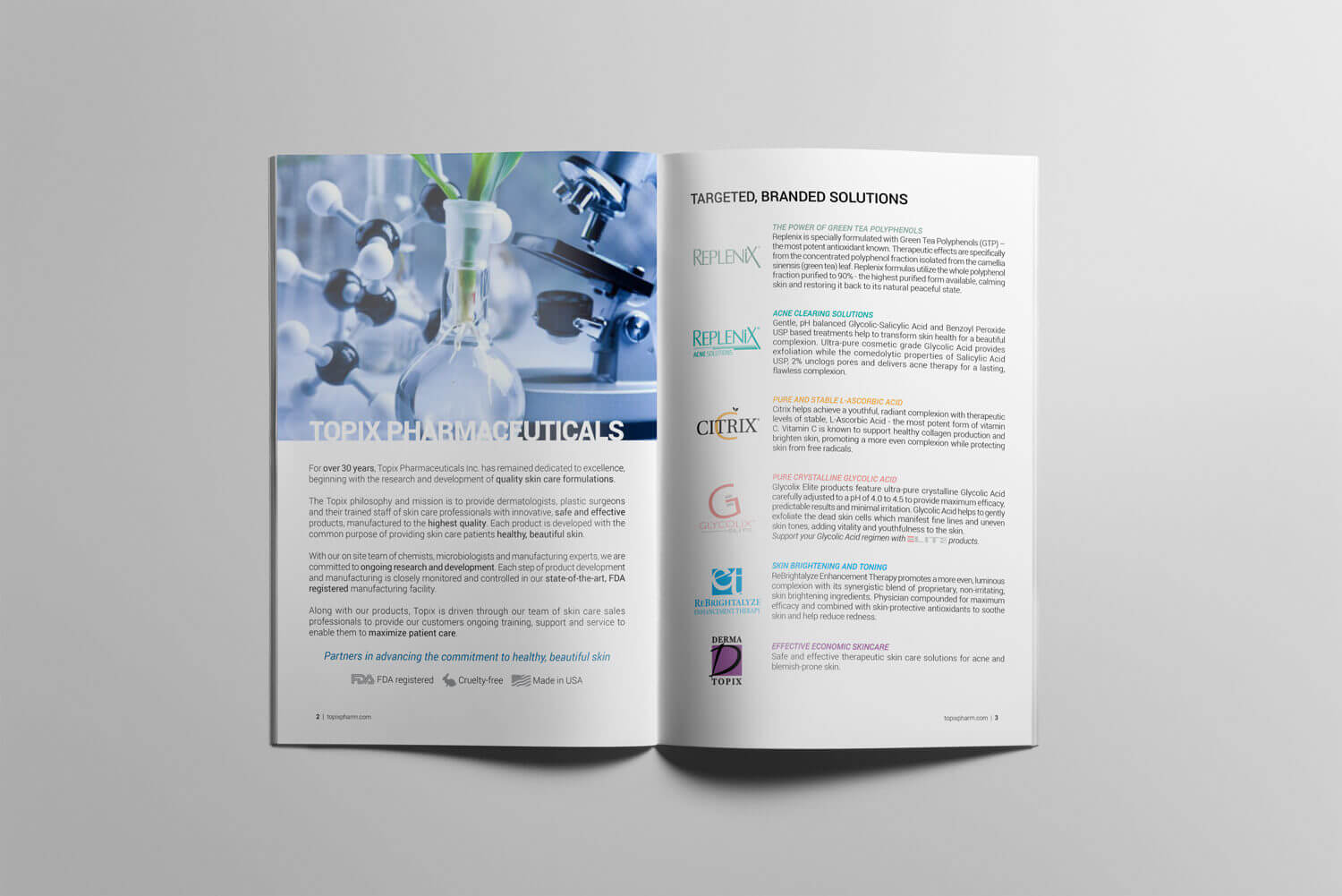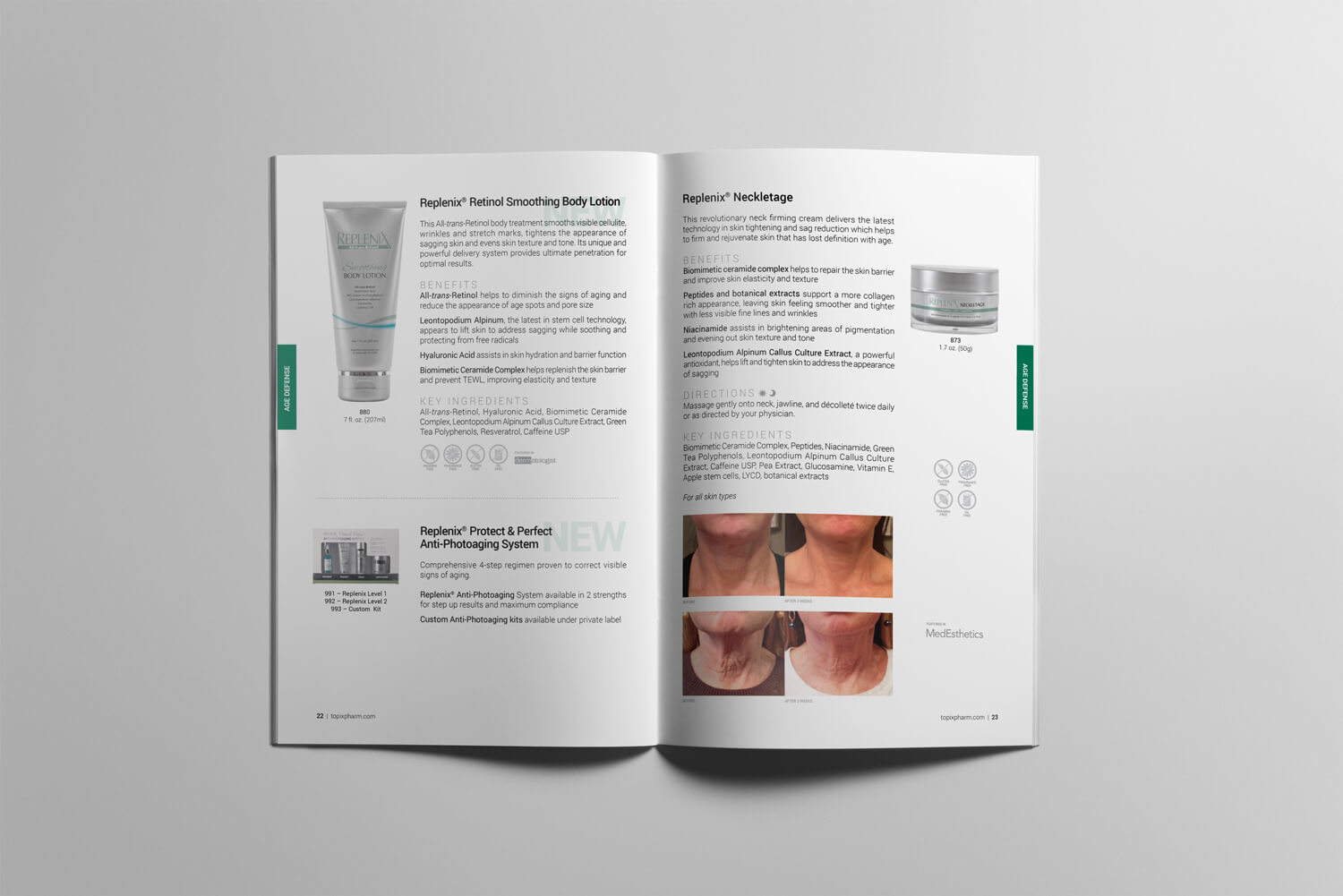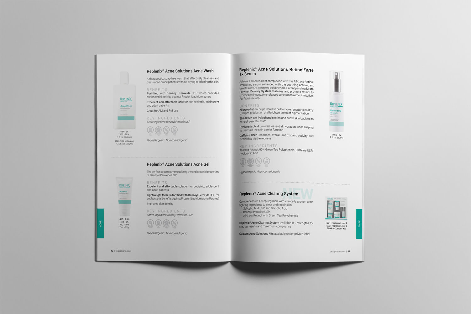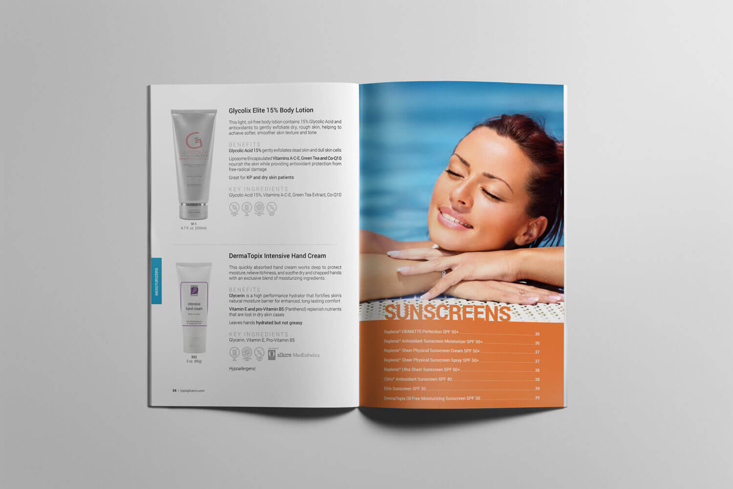 Revitalized the Topix Pharmaceuticals product guide, giving it a fresh and cohesive makeover. Engineered an intuitive categorization system, ensuring a seamless browsing experience for customers seeking specific products. Simultaneously, designed a user-friendly index empowering our sales representatives to effortlessly locate and spotlight products during interactions.